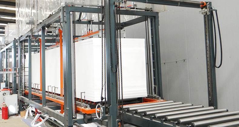 03根據(jù)需求將烘房養(yǎng)護(hù)后的EPS大板塊切割成客戶(hù)定制規(guī)格,其它形狀的適合于工程使用的板塊。